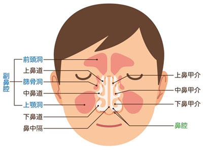 鼻の中には上・中・下の鼻甲介という壁があります