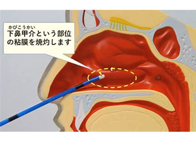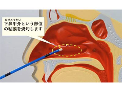 過敏になってしまった鼻腔粘膜の表面をレーザーで焼きとばしリセットします。