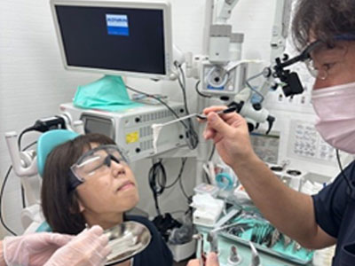 初めに麻酔液に浸したガーゼを挿入し表面麻酔します