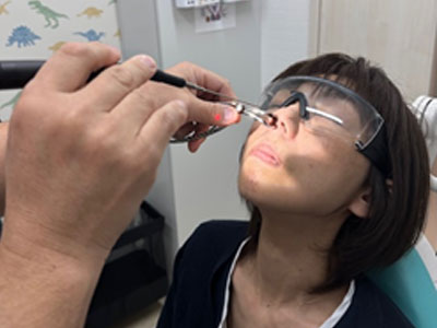鼻の中を見ながら下鼻甲介の表面を炭酸ガスレーザーで焼灼します