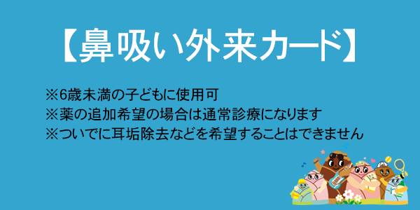 ※鼻吸いだけでも受診になるので必ず乳児医療証は提示してください。